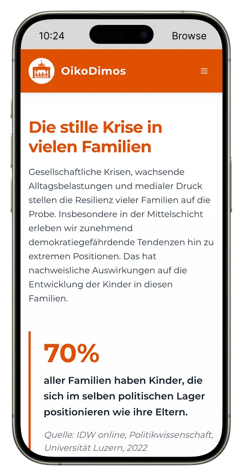 OikoDimos ist eine gemeinnützige Organisation, die sich für starke Familien und eine dadurch gestärkte Demokratie einsetzt.